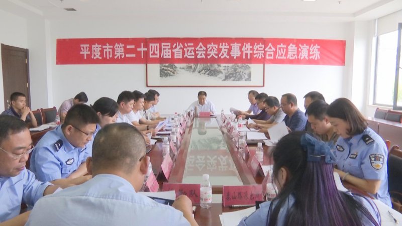 为进一步提高我市对大型群众性活动突发事件、公共场所突发事件、群体性突发事件的组织水平和应变能力,进一步规范第二十四届省运会突发事件应急指挥、应急处置的流程和方法,加强各应急联动部门协作配合,5?1日下午,我市在市民服务中心会议室开展了2018年平度市第二十四届省运会突发事件综合应急演练,市政府副市长、公安局局长汤龙文,市委宣传部、市政府应急办、市公安局、市卫计局、市教育体育局、市交通运输局、市供电公司、开发区管委、第24届省运会平度组委会办公室、国信公司、城发办等单位分管领导及工作人员参加了演练?/span>