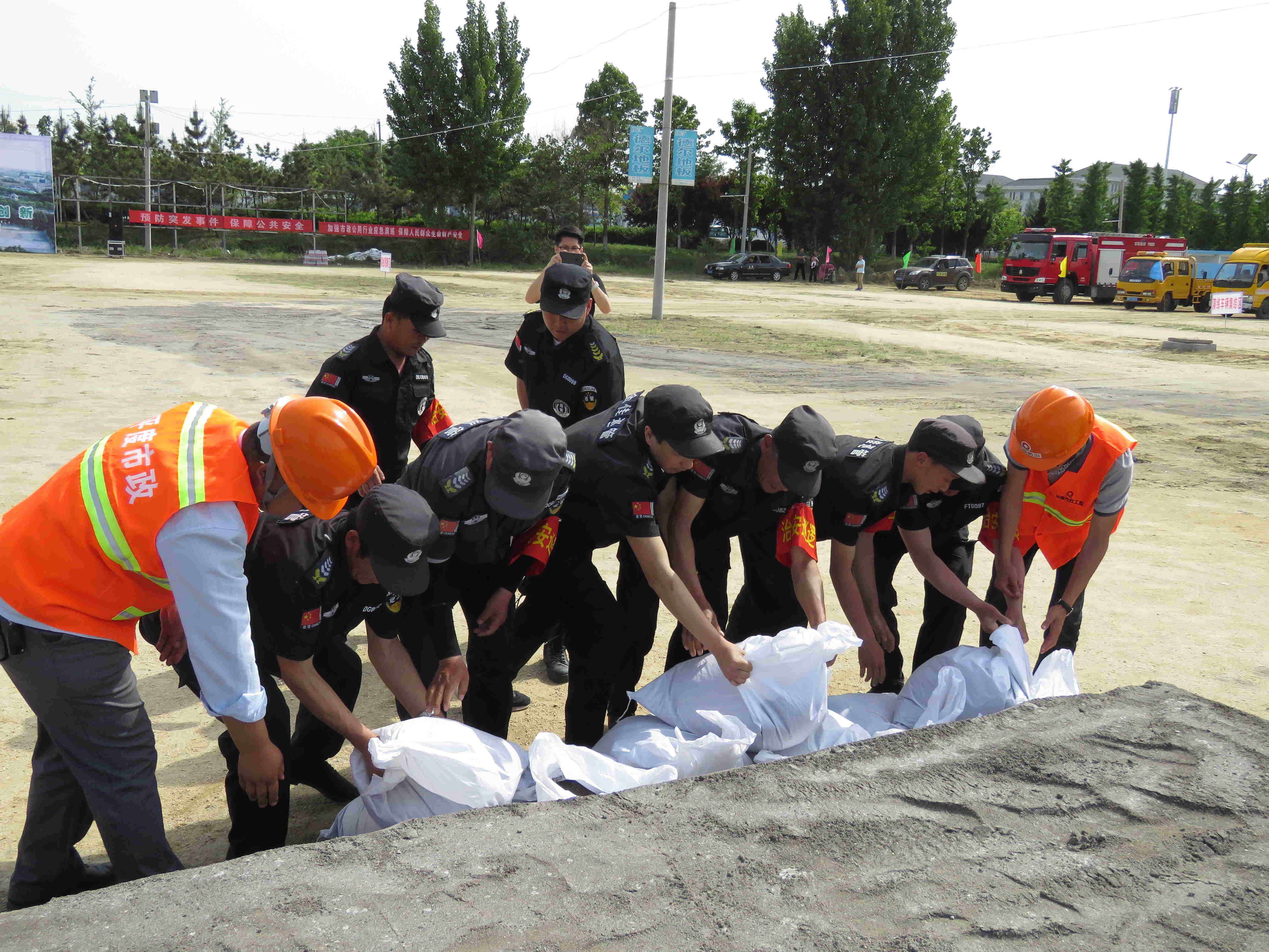 本次演练的模拟背景为,全市普降大暴雨,凤台街道现河河道水位暴涨,严重影响东潘家疃?071名群众的人身安全;由于河道垃圾淤积,严重影响排水泄洪能力;在河道疏通过程中,不慎挖断天然气管道,造成天然气泄漏起火。本次综合演练涵盖城市防汛、城市排水、市政工程、城镇燃气等应急预案,分群众安全转移、压沙袋护坡、挖掘机疏通河道、燃气管道泄漏起火抢?个科目?/span>