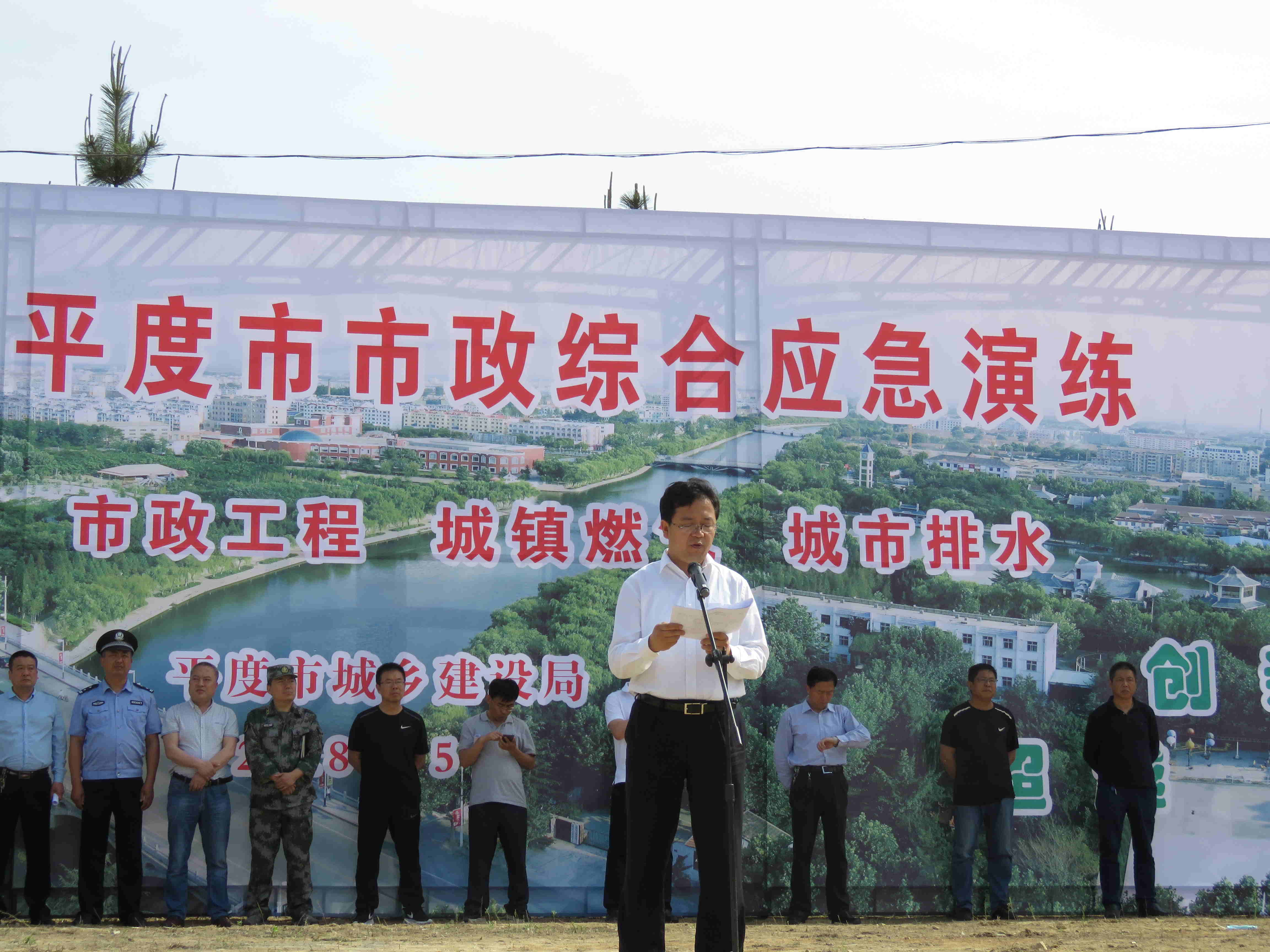 为提升我市应对市政公用行业突发事件的组织水平和处置能力,5?8日下午,我市在凤台街道办事处东潘家疃村组织开?018年市政综合应急演练。建设、综合执法、公安、卫计、气象及燃气抢险、市政工程抢险、各街道(开发区)等应急救援队?00余人参加了演练,各镇及市直相关部门的分管领导进行了观摩。市政府副市长徐广举出席并担任演练总指挥?/span>